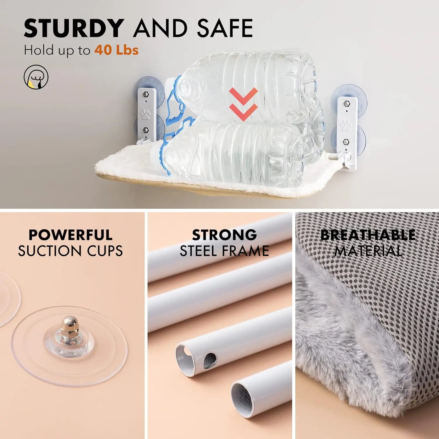 The sturdy, yet lightweight frame supports your cat’s weight, while the soft, cushioned hammock ensures hours of comfort. The foldable design makes it perfect for easy storage or travel, and the secure suction cups attach firmly to most windows, providing a stable perch for your cat without the need for drilling or permanent fixtures.