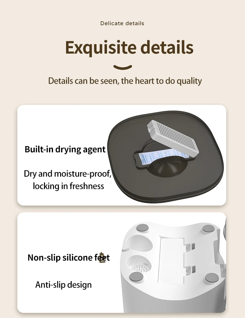 - Fresh Food and Water: With a sealed, airtight lid and a water bowl that keeps water fresh, your cat always has access to clean, crisp meals and hydration.