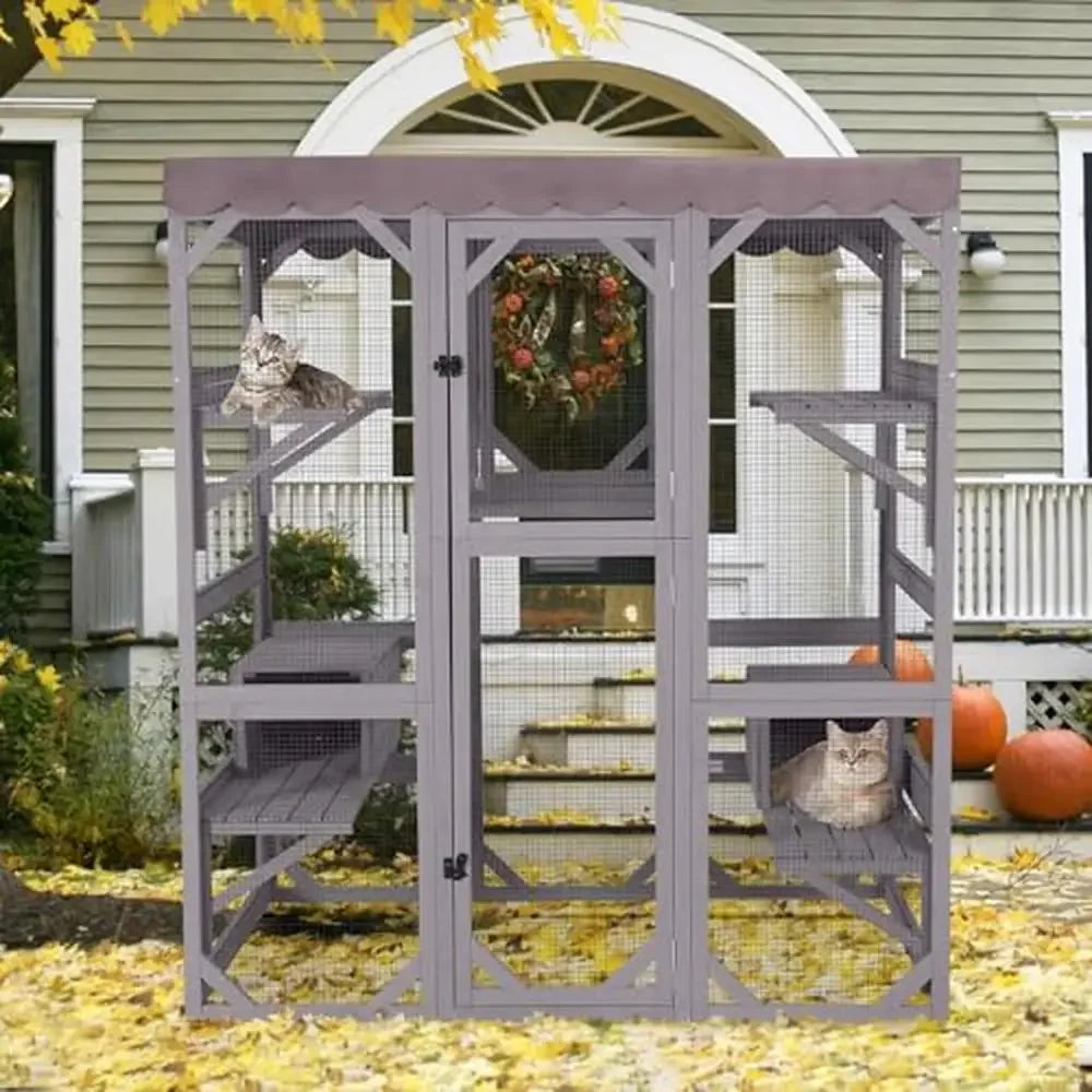 Enhance your cat’s quality of life with the Wooden Catio Outdoor Cat Enclosure with 7 Jumping Platforms, providing them with a secure and stimulating outdoor environment they’ll love.